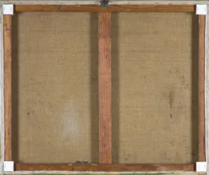 Na odwrocie, pod lewą listwą krosna, pieczęć z numerem odnoszącym się do wielkości podobrazia: 20 F; ponadto na g. listwie ramy nalepka Agra-Art z 2015 r.