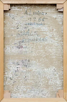 Na odwrocie na płótnie sygnatura i napis: A. Lenica. | 1965 | WARSZAWA | SŁOŃCE | ROZSYPANE