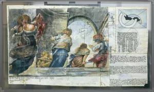 sygn. oł. l.d.: Cosme Tura. Zbigniew Makowski f. VIII. 1986. odwrocie sygn. tuszem l.d.: wg. The Temple of Janus Sebastiano Mazzoni'ego (1611-1678) | Zbigniew Makowski f. VIII. 1986