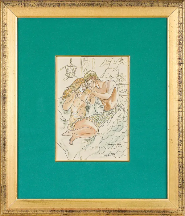 na odwr. l.g. napis ołówkiem: cena Desa 3.000 zł | czerwonym flamastrem: Zmodernizowana żona | ... [nieczytelne] Kasia [?] 1969, na datę nałożone dwie owalne pieczątki autorskie z napisem: MAJA | BEREZOWSKA | WARSZAWA