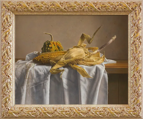 sygn. p.d.: CM | 2015, sygn. na odwr.: 2015 [w ramce] MACIEJ CICHOCKI | "KACZAN I TYKWA" | 41 x 51 cm - OIL/MASONITE