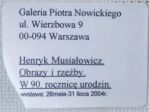 dwie nalepki: 1. z danymi obrazu; 2. Galeria Piotra Nowickiego | Musiałowicz Obrazy i Rzeźby | w 90 rocznicę urodzin | 26 marca - 31 lipca 2004 r.