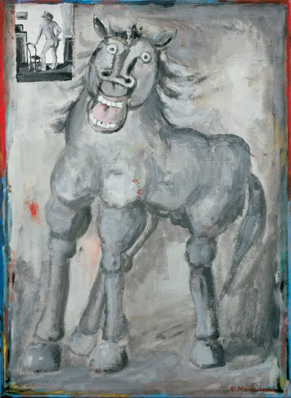 na blejtramie napis: „KOŃ“ 100 x 75 155.
