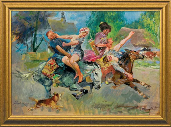 na odwrocie napis autorski: Stwierdzam | autentyczność | Wojciech Kossak. Obok lakowa pieczęć z odciśniętym z sygnetu z herbem „Kos”