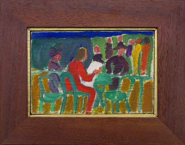 na odwr. na płótnie: czytający gazetę 1980 16 x 24, na dolnej żerdzi dedykacja dłg.: Panu Dr. Lechowi Siudzie | na pamiątkę H. Cybisowa | dn. 8 maja 1989 r.