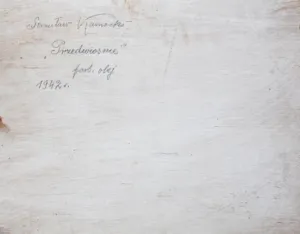 sygn. p.d.: St. KamockiNa odwrocie napis ołówkiem: Stanisław Kamocki | „Przedwiośnie“ | farb. olej | 1942 r.