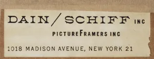Na tekturze - plecach - drukowana nalepka firmy ramiarskiej w Nowym Jorku