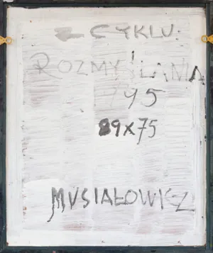 sygn. p.d.: MUSIAŁOWICZsygn. na odwrocie na płycie: Z CYKLU: | ROZMYŚLANIA | 1995 | 89 x 75 | MUSIAŁOWICZ