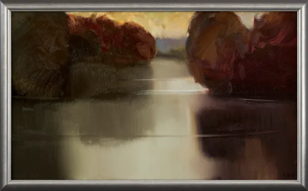 na odwrocie na płótnie sygnatura i napis: Stanisław Baj | Rzeka Bug | „Jesień“ | 2010 r.