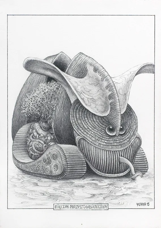 sygn. wewnątrz kadru p.d.:YERKA 15, na ramce śr: MIĘCZAK PARZYSTOGĄSIENICOWY [w ramce]