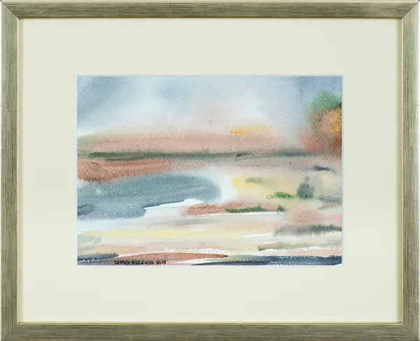 sygn. l.d.: DANUTA NIKLEWICZ 2014, sygn. na odwr. oprawy dłg.: Impresja – pejzaż, akwarela | Danuta Niklewicz, 2014