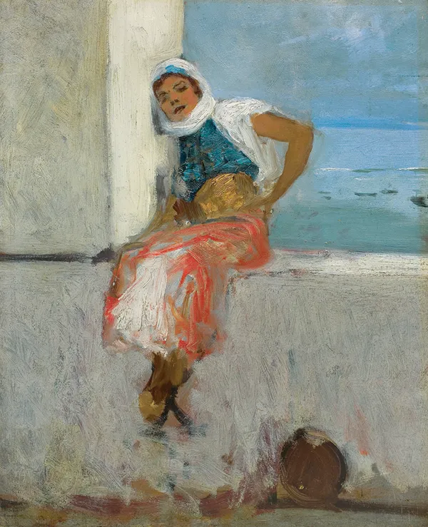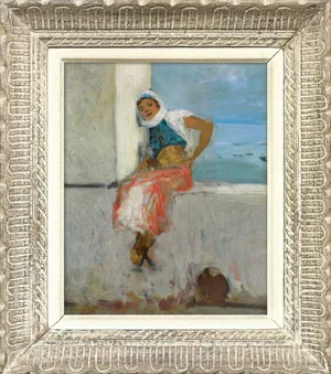 „Motyw ze wschodu“. | (olejny na drzewie.). Na nalepce niebieską kredką dopisek: 36