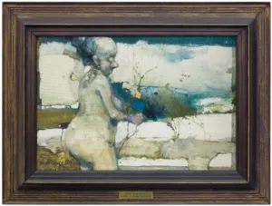 Na odwrocie na desce nalepka autorska z danymi obrazu.