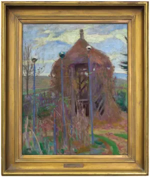 Na krośnie stempel wypełniony ręcznie: AUTOR WOJCIECH WEISS | TYTUŁ DZIEŁA ALTANA | RODZAJ ol/pł. | ROK POWSTANIA 58 x 47 cm | WYMIARY - | DATA POZYSKANIA - | [.] S. WYST. M. N. P. /1977. Katalog. Repr.; obok nalepka z danymi dot. obrazu i informacją o wystawach; na dolnej desce krosna nalepka Muzeum Narodowego w Poznaniu z datą 1977 i nr. 93.