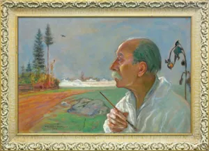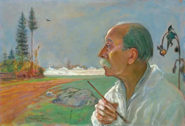 Wzruszający, nastrojowy autoportret z późniejszego okresu twórczości artysty, kiedy mieszkał w Szklarskiej Porębie.