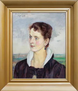 Artysta portretował żonę wielokrotnie, malując ją w różnych ujęciach i otoczeniu. Można tu przypomnieć Portret (1916) i Adzię i jej świat (1918; (oba w MN we Wrocławiu) oraz Pożegnanie z Pragą z 1916 (zbiory prywatne w Pradze). Na tym ostatnim płótnie w dali majaczy osnute mgłą miasto i górujące nad nim wieże staromiejskiego kościoła Najświętszej Marii Panny przed Tynem. Niemal identycznie przedstawił Hofman widok na Pragę i na naszym obrazie.