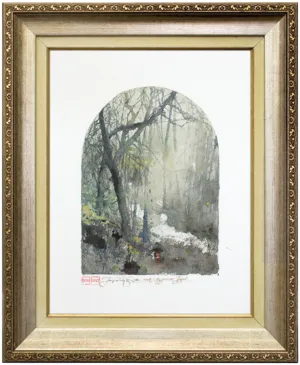 sygn. pod kadrem kompozycji od l.: [dwie osobne pieczątki czerwone ujęte w prostokątne ramki:] DUDA GRACZ, akwarelą: .Jerzy Duda. G. 2000 r. 1104. / Mszalnica. Jesień.