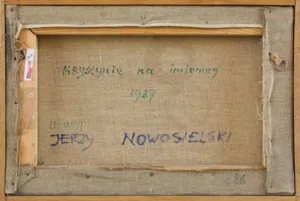 na odwrocie na płótnie dedykacja i sygnatura: Krystynie na imieniny| 1987 (CHORY) | JERZY NOWOSIELSKI