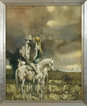 na odwr. nalepka autorska z danymi obrazu (tytuł po niemiecku: Andenken aus Lagow - 2)