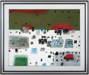 Swoje „kolekcje“ i zachodzące między przedmiotami „sytuacje“ maluje płasko, chętnie łagodząc ich graficzną surowość miękkimi cieniowaniami, które też sugerują przestrzenność kompozycji.