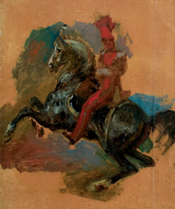 W odniesieniu do naszego obrazu taką inspiracją mógłby być Trębacz Lansjerów Gwardii (obecnie Burrel Collection, Glasgow).