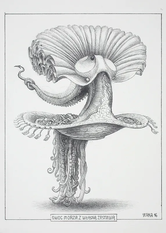 sygn. p.d.: YERKA 16, tytuł pośrodku w ramce: OWOC MORZA Z WŁASNĄ ZASTAWĄ