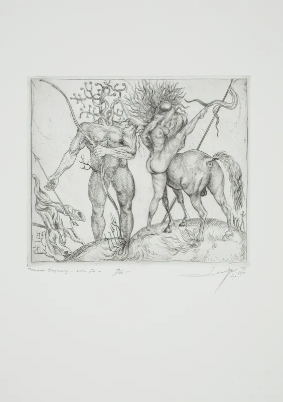 sygn. oł. pod ryc. l.: Porwanie Deianiry sucha igła 19/20- LeszekRózga IX 1971 | imp.
