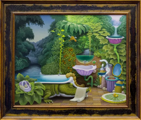 sygn. na odwr. na dolnej belce krosna: JACEK YERKA | >>KIESZONKOWA DŻUNGLA - POKÓJ KĄPIELOWY<< | AKRYL 2016