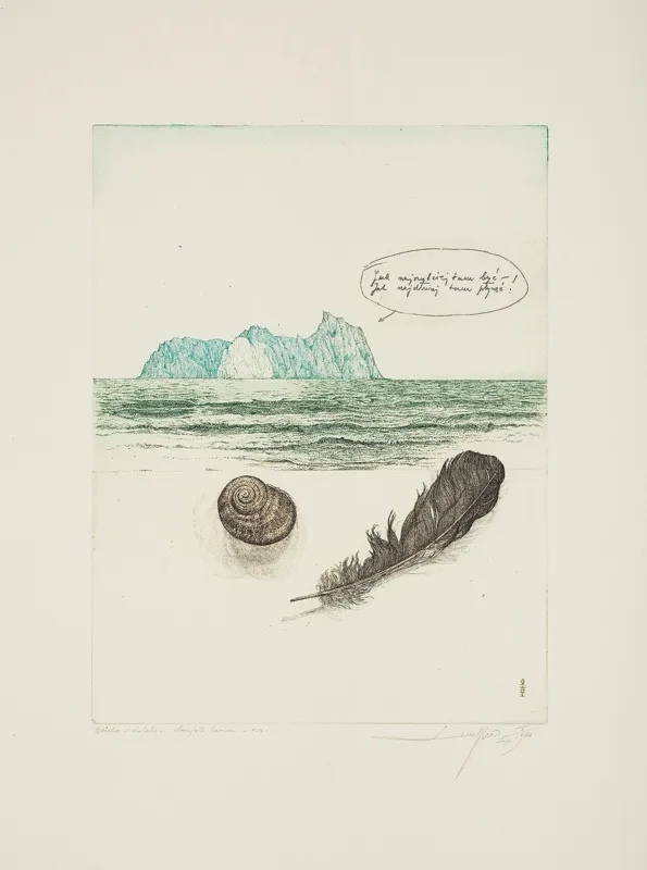 sygn. z płyty p.d.: LR [monogram wiązany] | 74 | Vsygn. oł. pod ryc l.: Blisko i daleko - akwaforta barwna - e.a., p.: LeszekRózga imp. V/1974