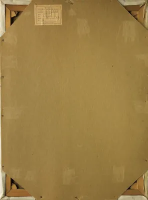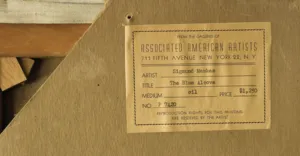 Na odwrocie w górnym rogu nalepka GALLERIES OF ASSOCIATED AMERICAN ARTISTS w Nowym Jorku (druk, maszynopis) z nazwiskiem autora i tytułem obrazu The Blue Alkove.