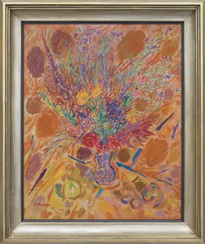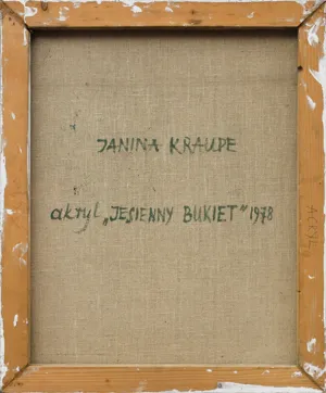 sygn. na odwrocie na płótnie: JANINA KRAUPE | akryl „JESIENNY BUKIET“ 1978