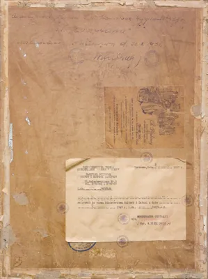 Ponadto – opatrzona podpisem generalnego konserwatora i pięcioma okrągłymi stemplami Ministerstwa Kultury i Sztuki Rzeczypospolitej Polskiej – karta będąca załącznikiem do pisma Naczelnej Dyrekcji Muzeów i Ochrony Zabytków z dn. 2 sierpnia 1947, zezwalającego na wywóz obrazu za granicę.