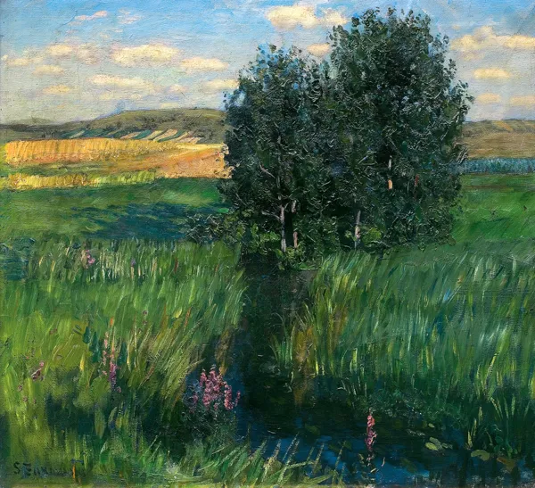 Obraz przedstawia motyw z Puszczy Świsłockiej (Knyszyńskiej), dokąd - w latach trzydziestych XX w. - artysta wielokrotnie jeździł. Malowane wówczas obrazy pokazywał na kilku wystawach; najliczniejszy ich zespół znalazł się na wystawie w warszawskiej Zachęcie w 1939 r. Umieszczona w opisie na odwrocie nazwa „Hornostajewicze“ odnosi się do majątku nad rzeką Roś w rejonie świsłockim obwodu grodzieńskiego (Białoruś).