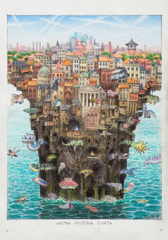 sygn. oł. p.d.: YERKA 17, pod kadrem rys. śr.: KRÓTKA HISTORIA ŚWIATA