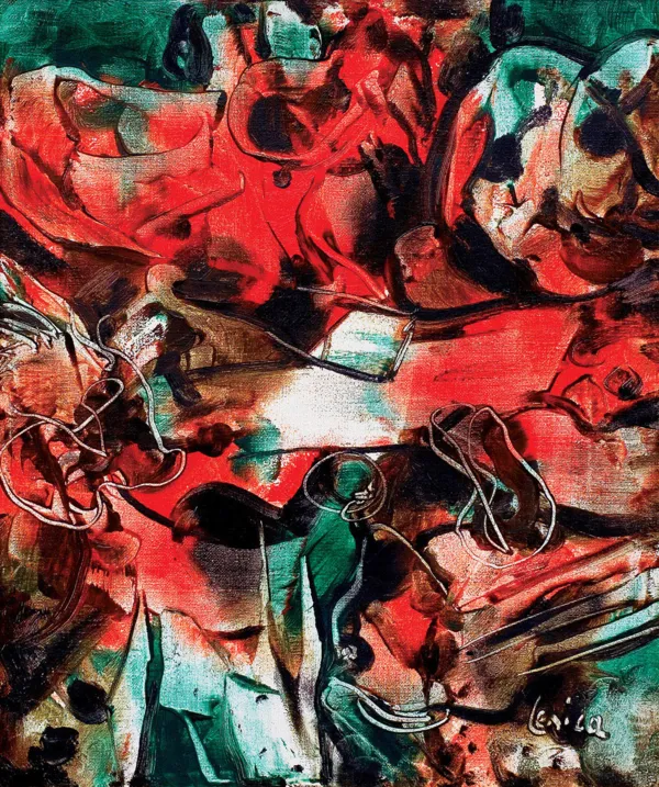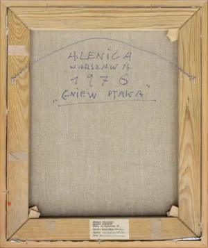 na odwrocie na płótnie sygn.: A. LENICA | WARSZAWA | 1976 | „GNIEW PTAKA“ [podkreślone]