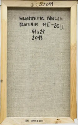sygn. na odwrocie na płótnie: WŁODZIMIERZ PAWLAK | DZIENNIK 19 II - 26 II | 41 x 27 | 2013