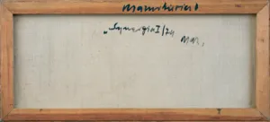 na odwrocie na płótnie napis i sygnatura: „Synergia I/74 | Maz.