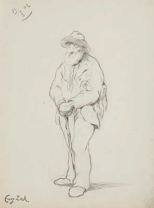 Rysunek pochodzi ze szkicownika prowadzonego przez młodego artystę od 3 X 1902, podczas paryskich studiów u Jeana Léona Gérôme’a w École des Beaux-Arts i w Académie Colarossi u Alberta Besnarda.