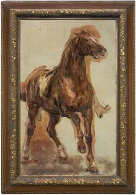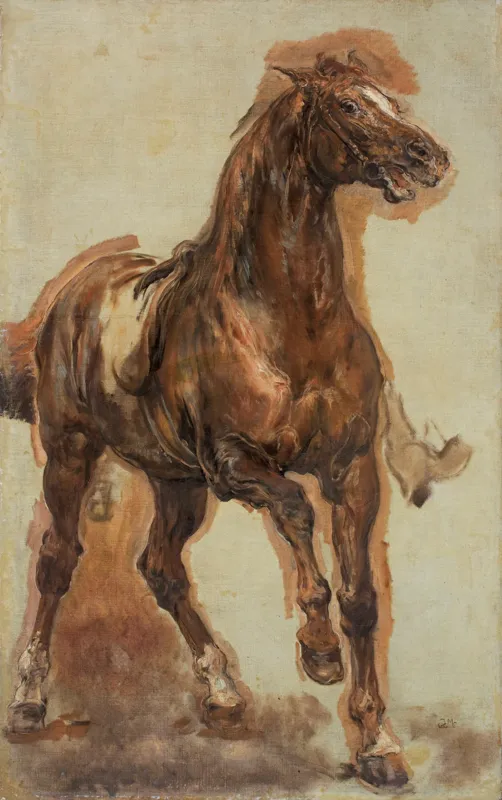 Jest to studium królewskiego rumaka do Sobieskiego pod Wiedniem, ukończonego w 1883 wielkiego historycznego obrazu, który Matejko w imieniu narodu polskiego ofiarował papieżowi Leonowi XIII i który znajduje się w Muzeum Watykańskim w Rzymie.
