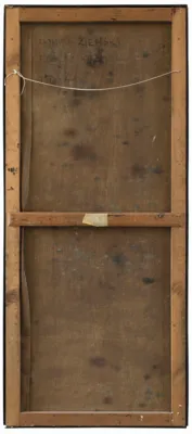 na odwrocie na płótnie sygnatura i napis: RAJMUND ZIEMSKI | PEJZAŻ 43/61 | 150 x 65 | 1961
