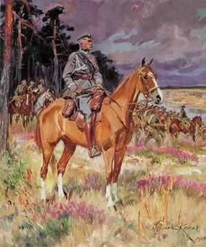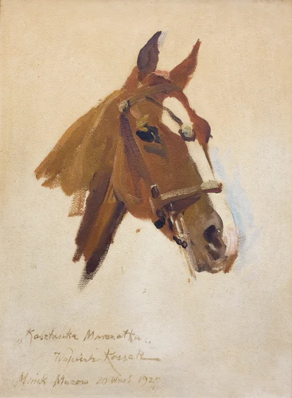 Studia Kasztanki, ulubionej klaczy Józefa Piłsudskiego, malował Kossak we wrześniu 1927 w Mińsku Mazowieckim w związku z pracą nad konnym portretem Marszałka. Powstały wówczas...