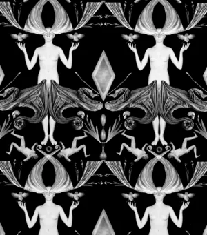 We wszystkich moich pracach używam postaci. Na ogół jest to postać nagiego mężczyzny, czasami jest to naga kobieta. Postać ludzka wprzęgnięta w deseń tworzy motyw ludzki, analogiczny do motywu roślinnego, zwierzęcego, które były wykorzystywane w tych dawnych deseniach.