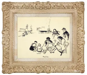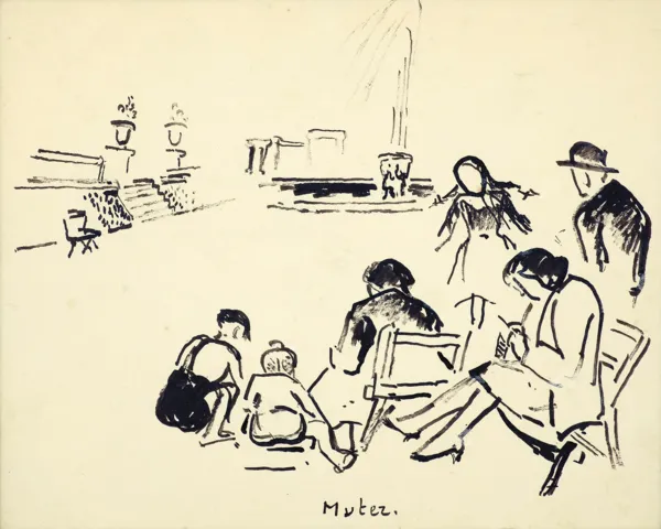 Na odwrocie rysunku napis atramentem: Les gosses de Paris. (Ten sam napis powtórzony także na „plecach“ oprawy).