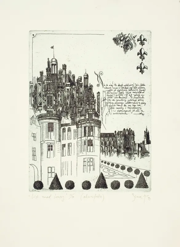 sygn. oł. pod ryc. l.: "List znad Loary" 16/50, śr.: (akwaforta), p.: Siara tm'93