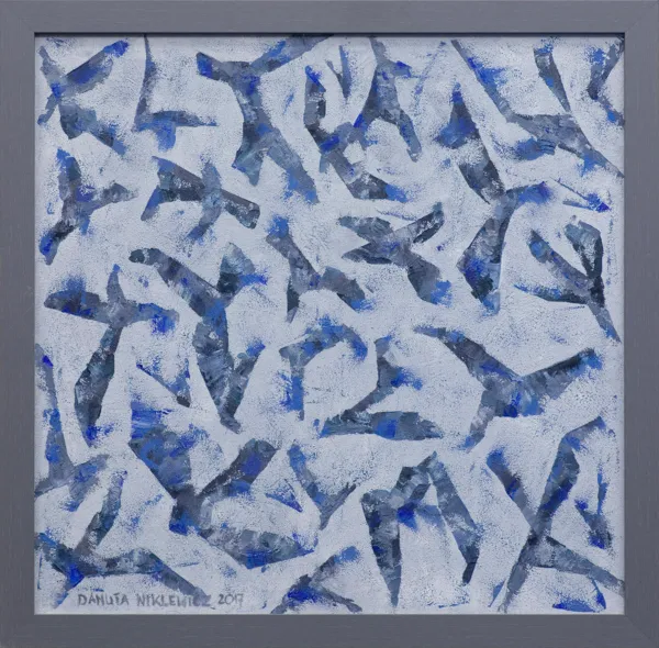 sygn. l.d.: DANUTA NIKLEWICZ 2017, sygn. na odwr. p.d.: INWAZJA MORZA | olejny 70 x 70 cm | Danuta Niklewicz, 2017