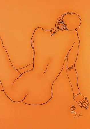 Sygnowany p.d.: A [znak autorski fioletowym pastelem] / 1994 [białym pastelem] / AFogtt [oł.]