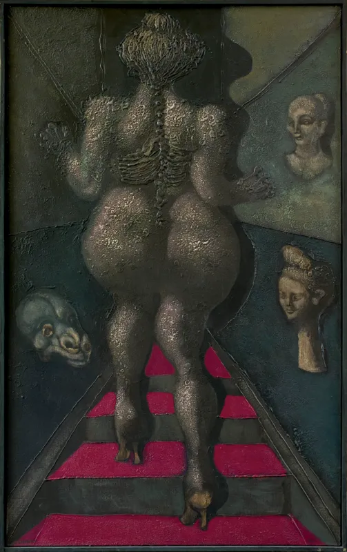 Synteza Wielkiej Matki z wielką ladacznicą dokonuje się w tych pracach według stale obowiązującej zasady jedności przeciwieństw. Dawna oś pionowa istnieje tu przede wszystkim w planie mentalnym. Jej znakiem jest teraz tylko wyraźna linia kręgosłupa przedstawionych postaci. Dokumentuje ona związek między pracami wcześniejszymi i późniejszymi – jest jakby herbem odrębnego typu stworzeń. [...]