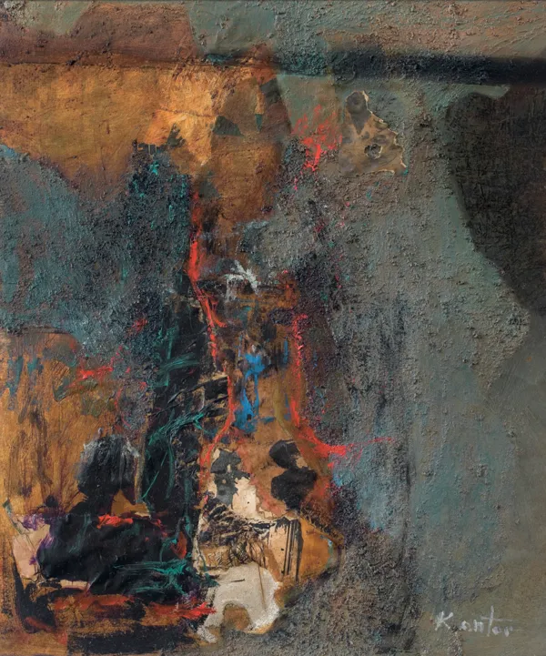 Kantorowski informel z czasem zaczął odchodzić od taszystowskich reguł. Materia malarska gęstniała, przyjmując postać grubych reliefów. Artysta zachowywał jeszcze gdzieniegdzie technikę drippingu, ale łączył ją z malarskim gestem szpachli i pędzla. Z końcem lat pięćdziesiątych, dla zwiększenia wypukłości twardniejącej masy używał kawałków spróchniałego drewna, korzeni, pokrywając je czarnym lakierem lub polichlorkiem winylu. Pojawiły się obrazy z zastosowaniem żywicy epoksydowej, worków i szmat nasączonych klejem stolarskim. (...)