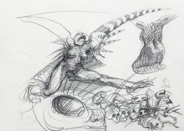 na odwr. p.d. okrągła pieczątka z monogramem artysty i napisem w otoku: Z rysunków Franciszka Starowieyskiego, niżej pieczątka: Potwierdzam autentyczność | [podpis dłg.:] T. Starowieyska