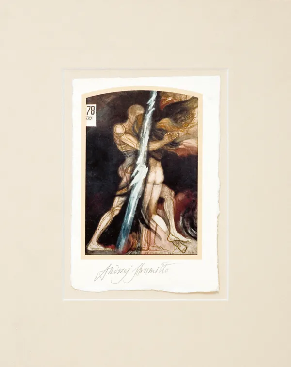 napis z płyty l.g.: 78 | 39, sygn. oł. pod ryc. śr.: Andrzej Strumiłło, na odwr. naklejone wersety z Psalmów z podkreślonym Psalmem 78,39